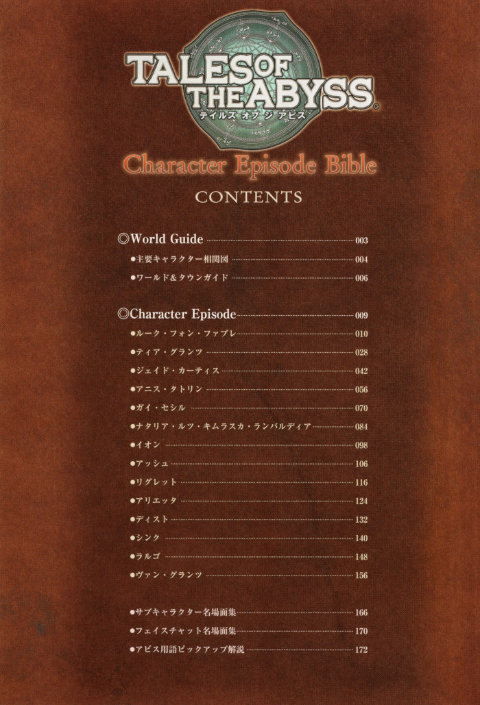 「テイルズオブジアビス キャラクターエピソードバイブル」の目次ページ