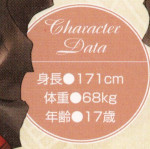 この項目には下表のキャラクターの概要や身長・体重などの基本情報と、キャラクターのゲーム本編での歩み、そしてキャラクターに関するショートストーリーが載っています。