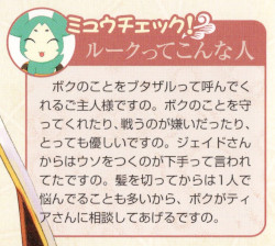 「テイルズオブジアビス キャラクターエピソードバイブル」に載っているルークに関するフェイスチャット紹介。