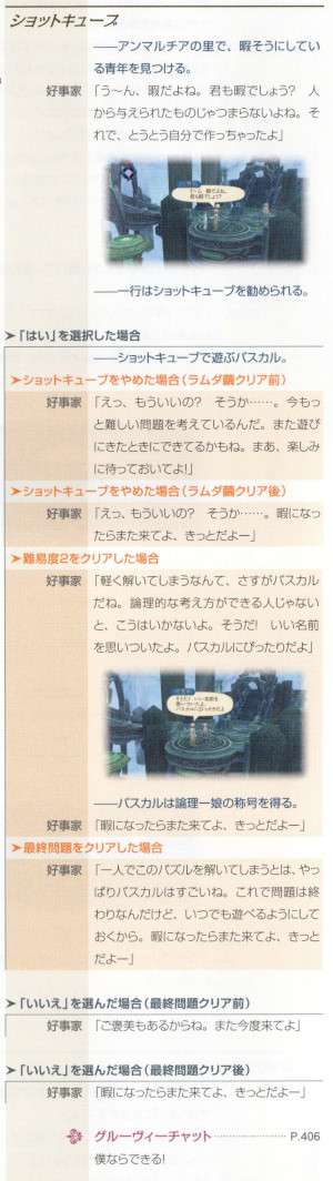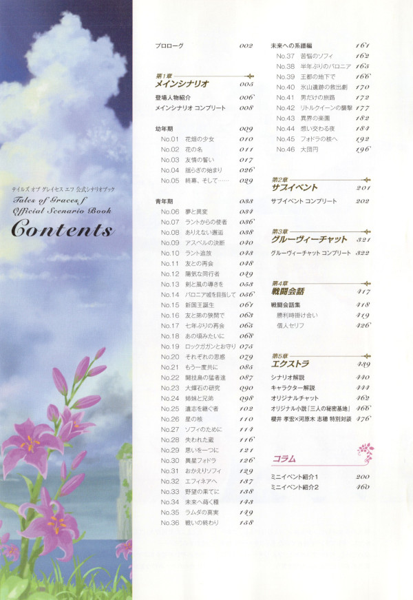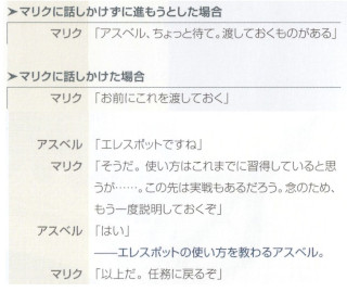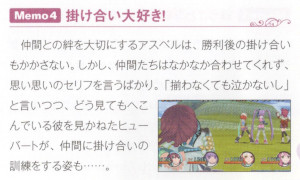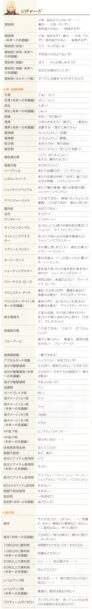 なお、掛け合いのセリフ集は「テイルズオブグレイセスエフ 公式コンプリートガイド」にも載っています。