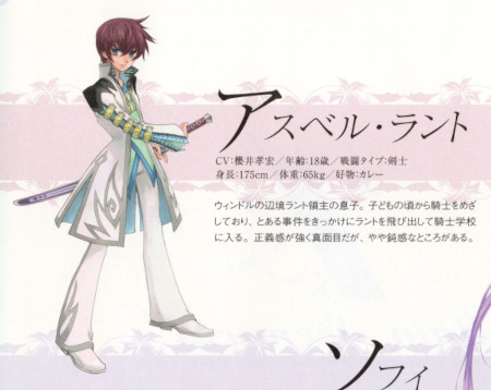 | アスベル | お節介で鈍感 意外な趣味の掃除 大の甘党 掛け合い大好き! |