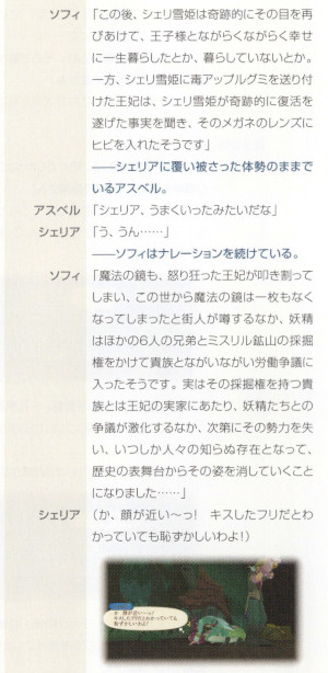 ゲーム中ではソフィのナレーション(魔法の鏡も~以降)は字幕表示されません。