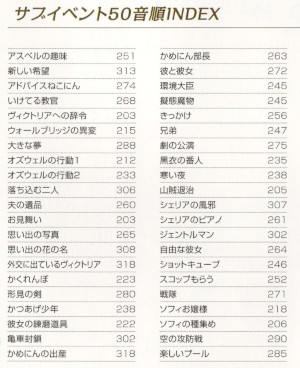 サブイベント名とセリフの掲載ページ数が載っているので、特定のイベントのセリフを確認したい場合は利用しましょう。
