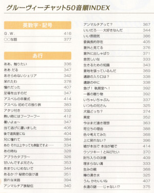 特定のチャットのセリフを確認したい場合、この項目の最初に載っている五十音順インデックスを利用しましょう。