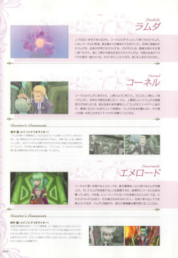 この項目には以下の主要キャラクター達の情報が2ページにわたって載っています。