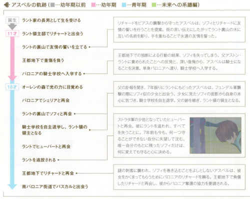 キャラクターの軌跡はメインキャラクター7名のページに載っている情報で、そのキャラクターに関する主な出来事が書かれています。