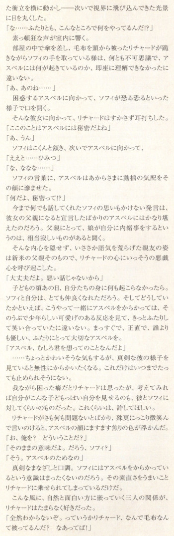 ソフィとリチャードが秘密基地を作る所まではゲーム中と同じ展開ですが、その後はアスベルを秘密基地に迎え入れて3人で語らう展開になっています。