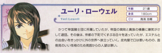 この項目にはテイルズオブヴェスペリアの以下のメインキャラクター9名のゲーム本編での歩みが5ページにわたって載っています。
