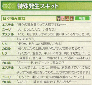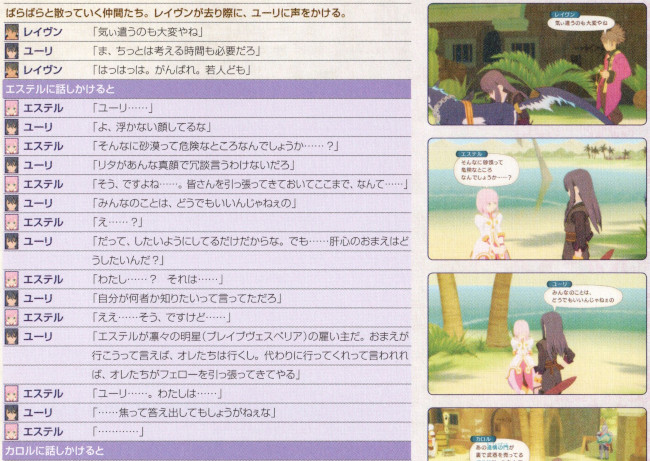 この章にはメインシナリオの全セリフが載っているのでテイルズオブヴェスペリアの物語をすぐに振り返りたい方は本書を購入することをオススメします。