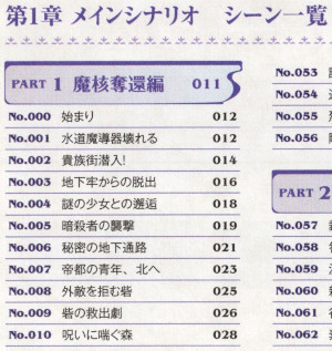 なお、目次の次ページにはシーンの番号とタイトルと掲載ページ数が載っている「メインシナリオ シーン一覧」があるので、特定のシーンのセリフの掲載場所を迷うことなく知ることができます。