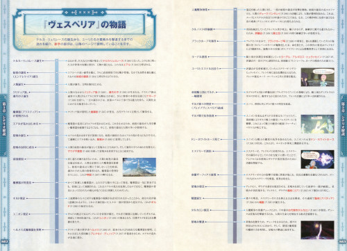 この項目にはテイルズオブヴェスペリアのシナリオを構築する下表の設定の解説が18ページにわたって載っています。