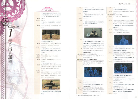 メインチャプターセリフ集にはメインチャプターで発生するイベントの全てのセリフが載っており、下の画像の様にセリフ、キャラクターの動作等の補足情報、ゲーム中の画像で構成されています。
