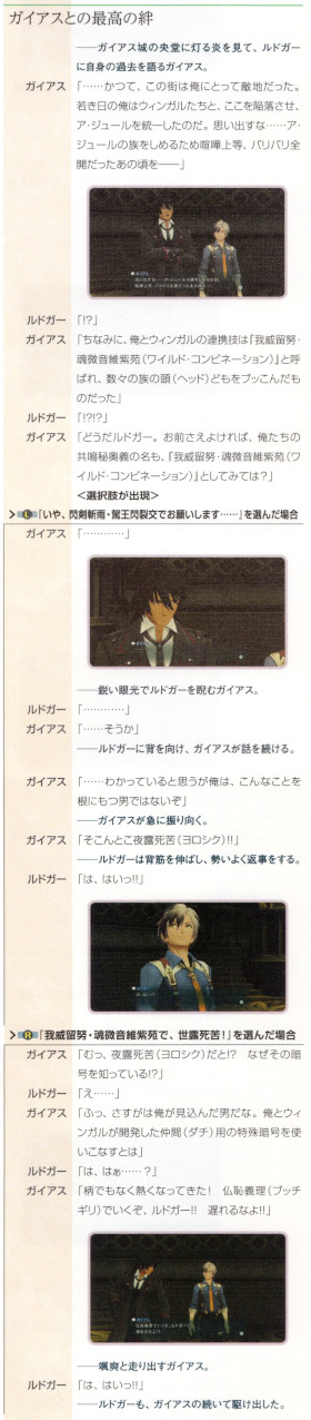 「テイルズオブエクシリア2 公式シナリオブック」に載っているガイアス親密度MAX時のイベントのセリフ集