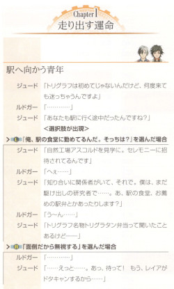 「テイルズオブエクシリア2 公式シナリオブック」のジュードエピソードのセリフ集の冒頭2ページ