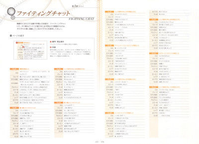 この章にはロングチャット、ショートチャット、ファイティングチャットの全セリフが掲載されています。