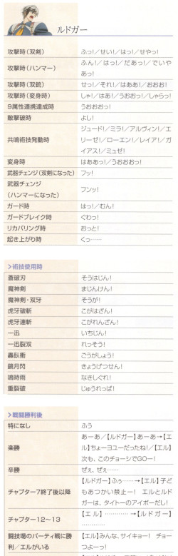 ルドガーの個人セリフの一部を抜粋。