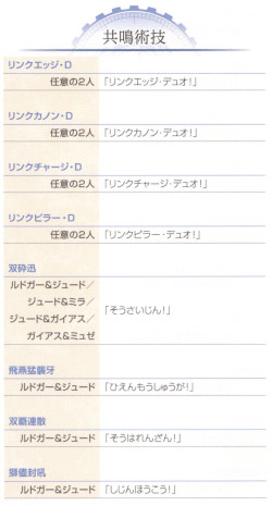 「テイルズオブエクシリア2 公式シナリオブック」に載っている共鳴術技セリフ集の一部